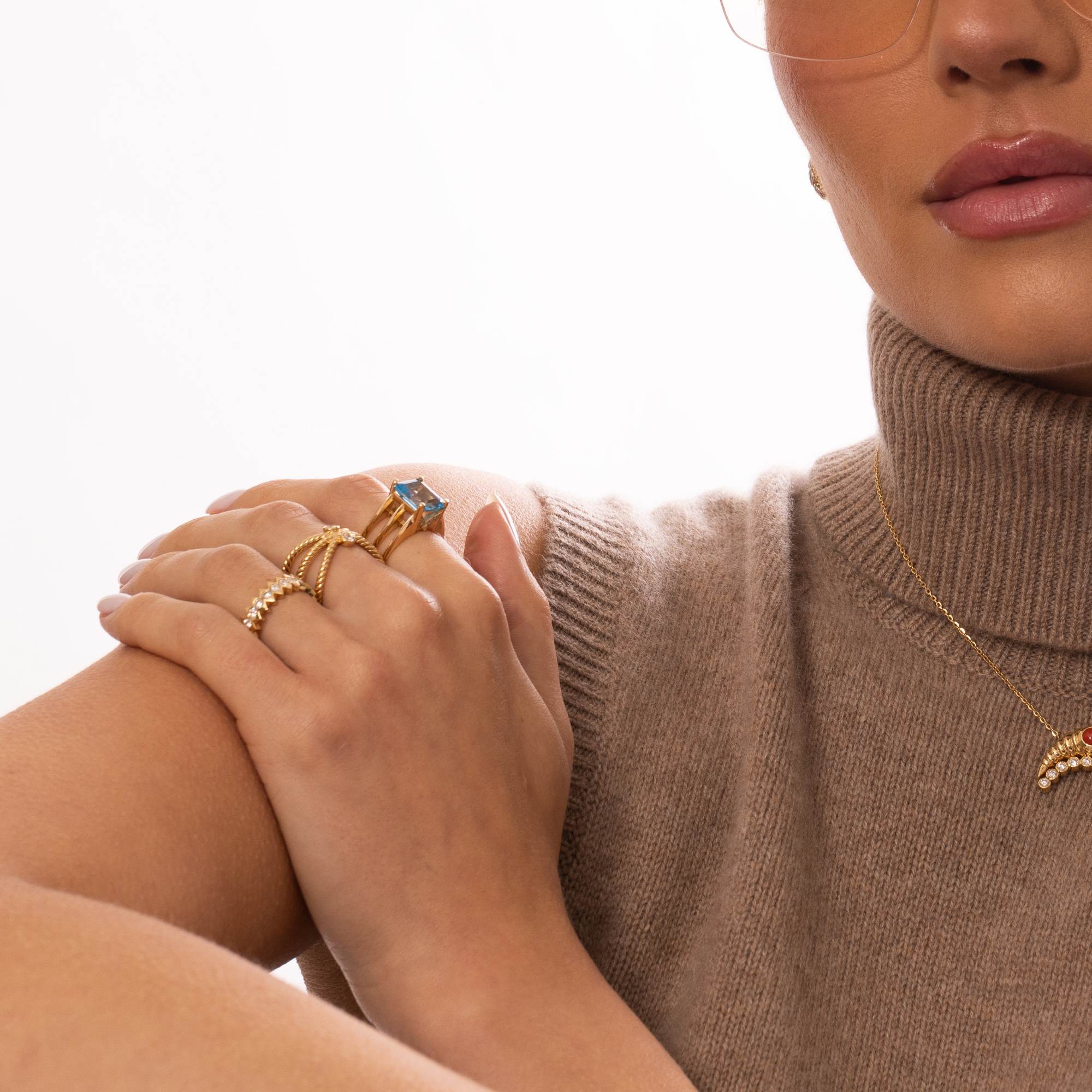 Blue Ice - Blue Topaz Triple Band Yellow Gold Ring